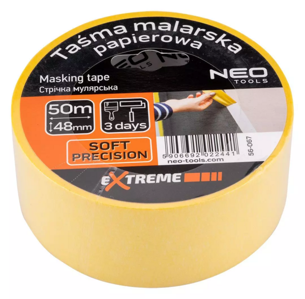 Описание товара Стрічка малярна Neo Tools, 50мх48мм, жовтий