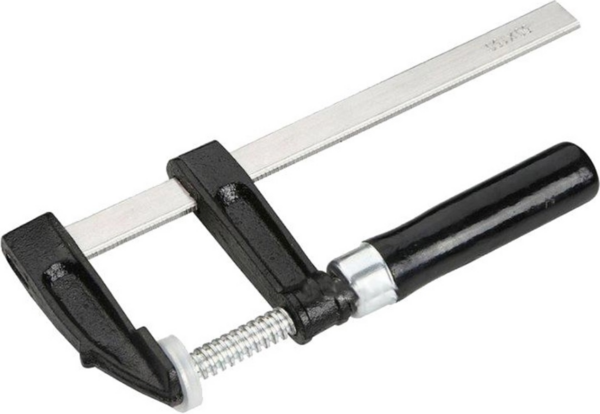 Струбцина F-подібного типу шириною 120 мм та довжиною 300 мм призначена для фіксації деталей шляхом притискання між собою або до потрібної поверхні. Ручний інструмент широко використовується столярами та зварювальниками в процесі обробки. Сила затиску 360 кг.