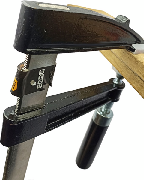 Нікельована основа забезпечує міцність, стійкість до корозії та привабливий зовнішній вигляд. Нерухома губка виготовлена з високоякісного матеріалу, що забезпечує надійну фіксацію деталей. Різьбовий стрижень з дерев'яною ручкою дозволяє плавно регулювати силу затискання. Міцна основа та губки забезпечують довгий термін експлуатації та надійну фіксацію.