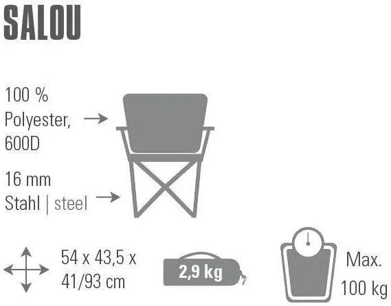High Peak Salou Dark Grey/Blue (44108) - комфортний розкладний стілець із високою спинкою та підлокітниками з вбудованим підстаканником. Міцна сталева рама з порошковим покриттям витримує навантаження до 100 кг. Зносостійка якісна тканина з поліестеру забезпечує тривалу експлуатацію. У складеному вигляді стілець дуже компактний і постачається з практичним чохлом для перенесення.