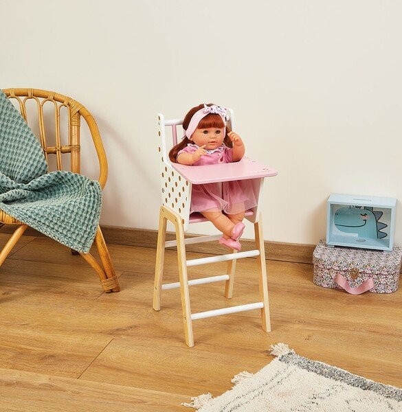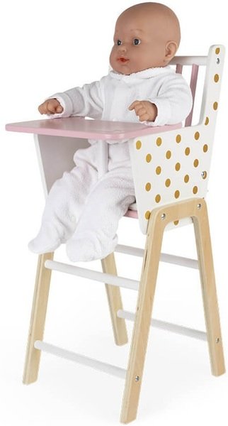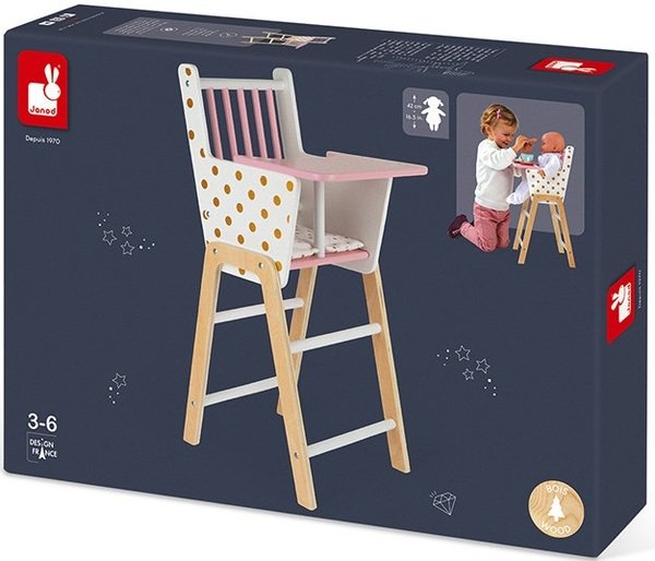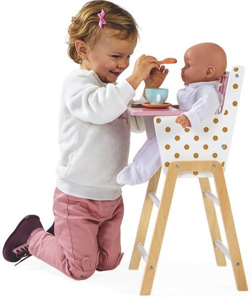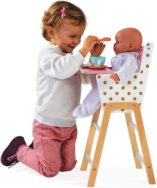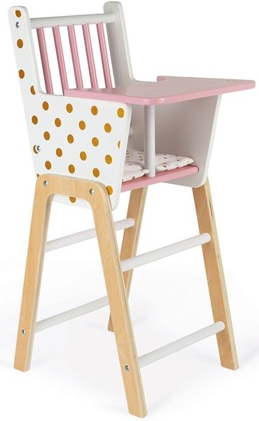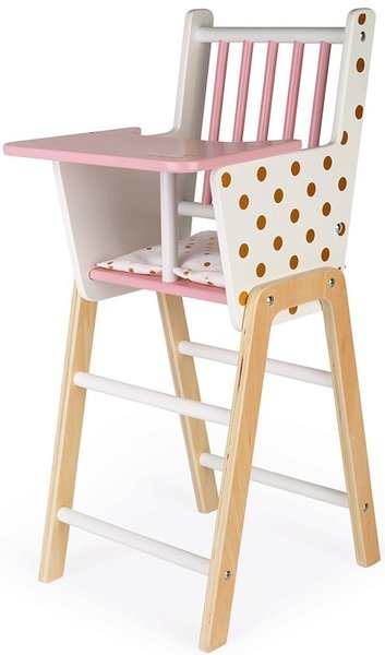 Дерев'яний стілець для ляльки французького бренду Janod серії Candy Chic в рожево-білих тонах виконає мрії кожної дівчинки. Маленькі мами вивчать процес годування, граючи з ляльками відповідно до їх власною уявою. Симпатична подушка забезпечує зручну посадку для всіх ляльок.