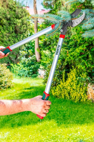 Сучкоріз контактний VERTO, довжина 710 мм, діаметр різання до 42 мм. Призначений для підрізування тонких і товстих гілок. Лезо з тефлоновим покриттям, що забезпечує захист від корозії. Додаткова перевага – передача, на 40% зменшує необхідне для обрізки зусилля, а також алюмінієві рукоятки, що оптимізують вага інструменту. Ручки ергономічної форми з антиковзаючим покриттям забезпечують користувачеві комфорт і безпеку під час роботи.