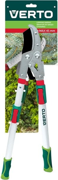 Сучкоріз універсальний телескопічний VERTO, довжина 670 - 970 мм, діаметр різання до 45 мм. Сучкоріз типу by-pass, призначений для підрізання тонких і товстих гілок. Лезо з тефлоновим покриттям, що забезпечує захист від корозії. Додаткова перевага - передача, що на 30% зменшує необхідне для обрізання зусилля, а також алюмінієві рукоятки, що оптимізують вагу інструмента. Телескопічні рукоятки збільшують робочий діапазон інструменту. Ергономічні ручки з антиковзаючим покриттям забезпечують комфорт і безпеку під час роботи.