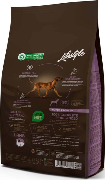 Nature's Protection Lifestyle беззерновий корм з бараниною для дорослих усіх порід - це повноцінний і збалансований сухий корм для собак суперпреміум класу з джерелом білка і сировиною найвищої якості. Цей повнораціонний сухий корм для собак спеціально розроблений для дорослих собак усіх порід і забезпечує легку засвоюваність і здорову імунну систему. Він збагачений інноваційними інгредієнтами, що не містять глютену, і забезпечує ідеальну ефективність для благополуччя вихованця. Повний склад цього сухого корму для собак не тільки забезпечить вашого улюбленця всіма ефективними поживними речовинами, а й допоможе зміцнити імунну систему та підтримувати здоровий стан шкіри та шерсті.