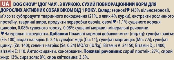 - Сухий корм для активних собак Dog Chow Active Adult з куркою 14 кг