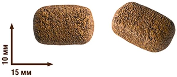 В основі преміального корму - дегідратоване та подрібнене м’ясо яловичини, а також свіжі м’ясні субпродукти, що насичують організм необхідною кількістю тваринних протеїнів. Цільні злаки забезпечують вихованця енергією та вітамінами групи В. Корм збалансований за вмістом білків та жирів.