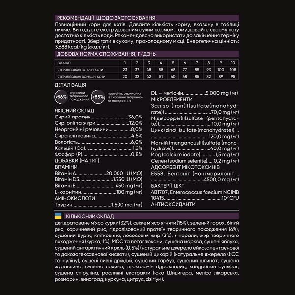 | Призначення | Для кастрованих та стерилізованих, Основне годування |