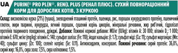 Сухий повнораціонний корм Purina Pro Plan Adult Renal Plus з куркою для дорослих котів