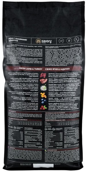 Ексклюзивна рецептура корму була розроблена досвідченими європейськими фахівцями з харчування хатніх улюбленців. Використовуючи холістичний підхід, вдалося створити біологічно відповідний, здоровий раціон для кішок, який є таким корисним і смачним, що лапки оближеш. Поєднання добірних натуральних інгредієнтів дає змогу піклуватися про здоров'я чотириногого, а вишуканий смак — дарувати йому насолоду від щоденного споживання корму Savory. Сухий корм для кішок Savory містить свіже м'ясо ягняти та дегідратоване м'ясо індички, ягоди, фрукти й овочі. Ці компоненти створені природою, щоб котик зміг вгамувати голод, отримавши необхідні поживні речовини без ризику виникнення алергії.