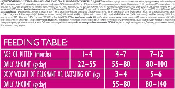 - Сухий корм для кошенят Brit Care GF Kitten Growth & Developmen з куркою та індичкою, 2кг
