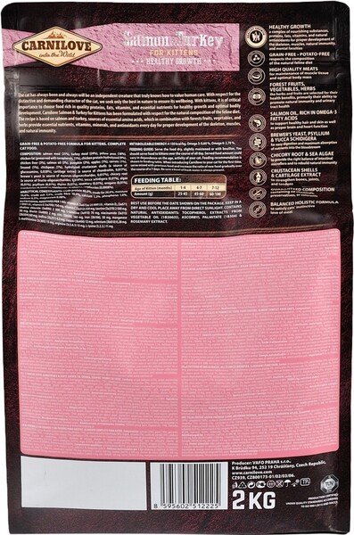 Carnilove Salmon&Turkey Kitten — повнораціонний беззерновий сухий корм класу холістик із лосося й індички для здорового росту кошенят.
