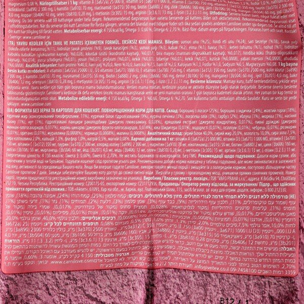 Енергетична цінність: 4150 ккал/кг. Омега-3: 0,6%, Омега-6: 2.7%.