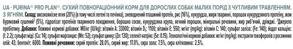 - Сухий корм для дрібних собак з чутливим травленням Purina Pro Plan Dog OptiDigest з ягням і рисом 3 кг