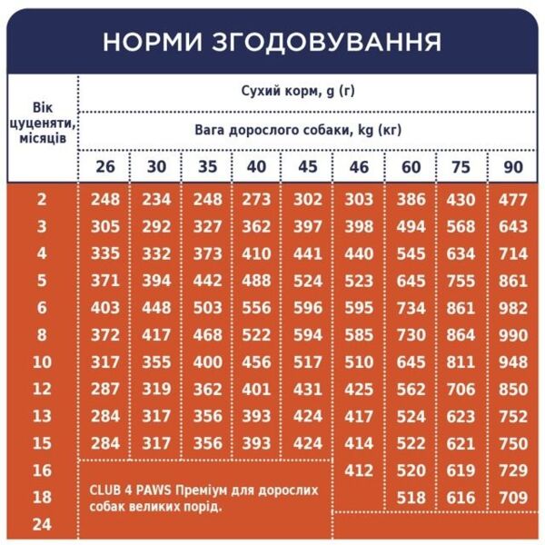 - Для цуценят великих порід вагою від 40-90 кг (у дорослому віці) та віком до 1 року