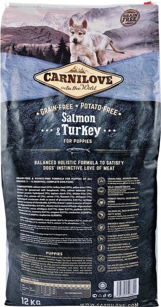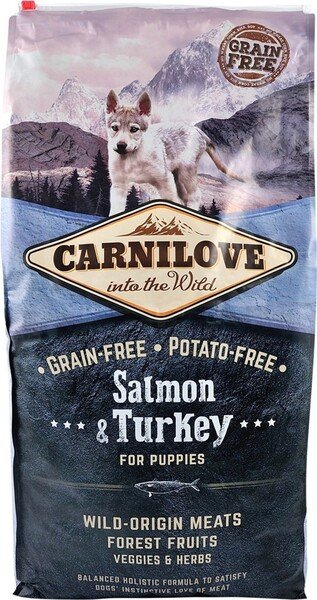 - Корм Carnilove Salmon & Turkey для цуценят створений з урахуванням особливих потреб цуценят у харчуванні для здорового росту.