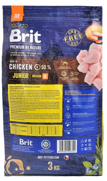 Brit Premium by Nature Junior М - досконала формула з курячим м'ясом для молодих собак (1-12 місяців) середніх порід (10-25 кг).