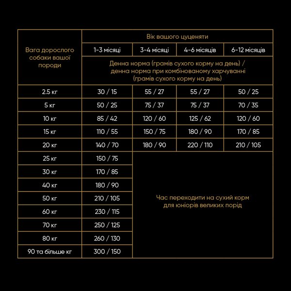 | Вік | Для цуценят |