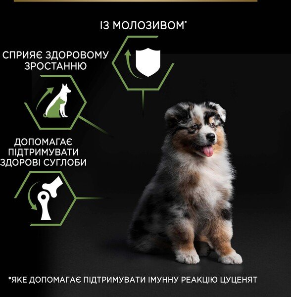 Перший рік життя Вашого собаки (або два роки, якщо Ваше цуценя великої породи) є вирішальним для його здоров’я впродовж всього життя. В цей період Ваше цуценя потребує особливого харчування, щоб у нього сформувались міцні зуби, м’язи та кістки. А оскільки природний захист його організму ще не повністю сформувався, цуценя ще не може бути надійно захищеним. Цей період у житті собаки також називають «імунною прогалиною», коли існує високий ризик ураження інфекціями та порушеннями системи травлення. Щоб допомогти цуценятам отримати якнайкращий старт у житті, ветеринари та дієтологи Purina розробили корм для цуценят середніх порід Pro plan puppy.