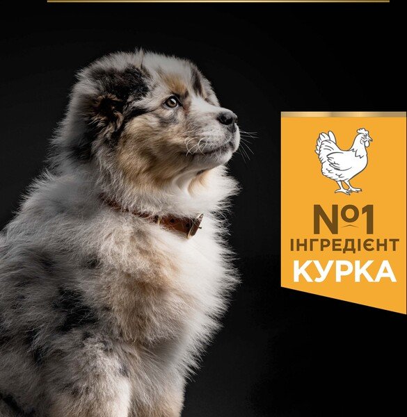 Сухий повнораціонний корм для цуценят середніх порід Pro plan з куркою, який також підходить для вагітних та лактуючих собак.