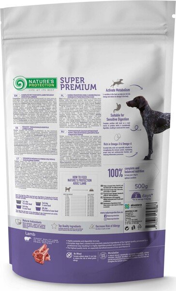 Nature‘s protection збалансовані повнораціонні сухі корми супер-преміум класу, створені для задоволення різноманітних потреб молодих та зрілих собак. Особливо улюблені собаками легкозасвоювані корми не містять генетично модифікованих продуктів і штучних барвників. У складі сухого корму – інгредієнти найвищої якості. Повнораціонний сухий корм дозволяє повністю задовольнити потреби організму дорослого собаки в поживних речовинах, позитивно впливає на загальне здоров'я вихованця, легко засвоюється та має приємний для тварини смак.