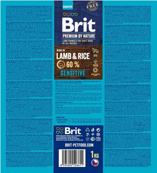 - Сухий корм для собак Brit Premium Sensitive Lamb із чутливим травленням зі смаком ягняти 1 кг