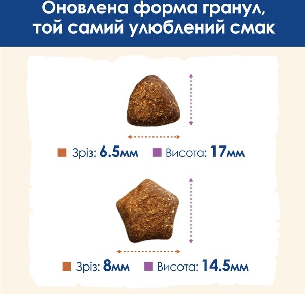 - Крокети двох розмірів допомагають підтримувати здоров'я ротової порожнини.