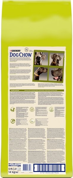 Сухий повнораціонний корм для дорослих собак великих порід віком від 2 років. Весь час бігати та ганятися, а також захищати та охороняти - ось, що означає бути справжнім для собак великої породи. Саме через це вони потребують харчування, яке буде правильно підживлювати їх природний ентузіазм та допомагати підтримувати їх у хорошій фізичній формі. Тому корм Dog Chow створено з урахуванням потреб собак великих порід та містить незамінні амінокислоти для підтримки життєво важливих функцій організму, а також омега-3 жирні кислоти для підтримки здоров'я суглобів. До складу корму також входять відібрані натуральні інгредієнти і цикорій, який має пребіотичні властивості для підтримки здорового травлення, щоб ви були впевнені у тому, що ваш собака у відмінному стані.