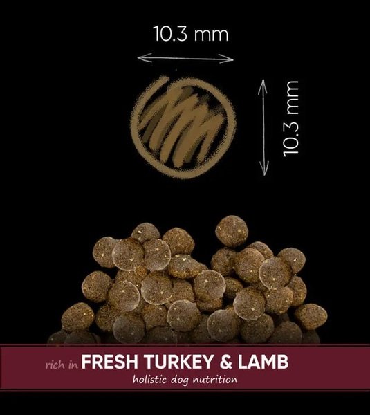 | Склад | Дегідратована індичка (33%), рис, свіжа індичка (15%), курячий жир, дегідратована ягнятина (5%), сушені яблука, лососевий жир, гідролізована куряча печінка, дріжджі, сушена броколі (1%), сухе кокосове (5%). ), амарант (0.5%), Насіння чіа (0.5%), насіння кіноа (0.5%), сушені помідори (0.5%), шпинат сушений (0.5%), мінерали, куркума сушена (0.2%), глюкозамін (0.025%), хондроїтин сульфат (0.015%), мананолігосахариди (0.015%) фруктоолігосахариди, (0.01%), юкка Шидігера (0.01%), лактобактерії ацидофільні НА – 122 ін |