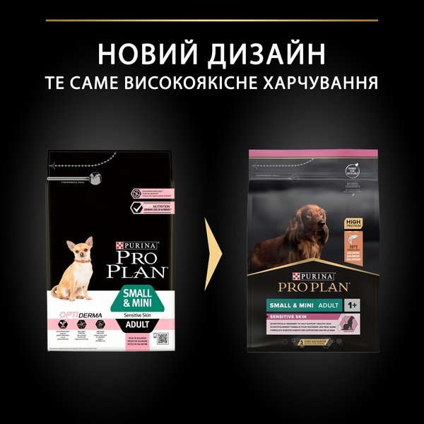 Сухий повнораціонний корм PRO PLAN (Про План) для собак дрібних порід, схильних до алергії. Деякі собаки страждають від проблеми чутливої шкіри. Такі тварини, не маючи жодних інших проблем зі здоров’ям, чухаються значно частіше, ніж інші собаки, і рівень лупи в них теж значно вищий, ніж у собак з нечутливою шкірою. Розроблений нашими ветеринарами та дієтологами сухий корм для собак PROPLAN з OPTIDERMA забезпечує досконале харчування, що підтримує здоров’я шкіри собак.