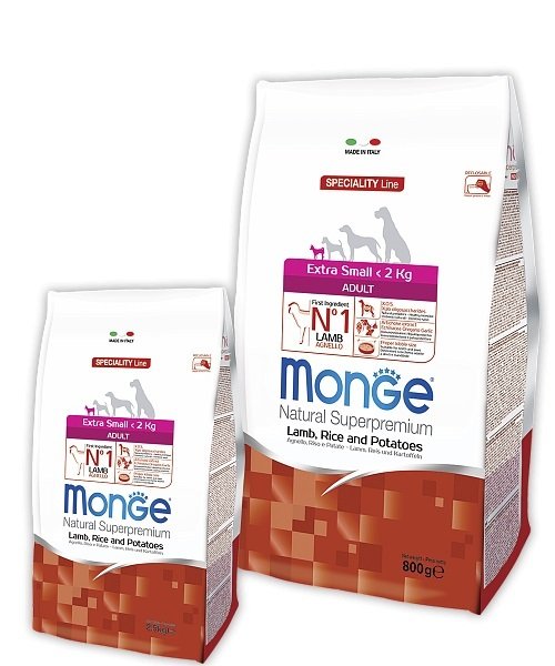 - Сухий корм для собак Monge Dog Extra Small Adult ягня/картопля, 2,5 кг