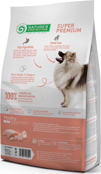 Nature‘s protection збалансовані повнораціонні сухі корми супер-преміум класу, створені для задоволення різноманітних потреб молодих та зрілих собак. Особливо улюблені собаками легкозасвоювані корми не містять генетично модифікованих продуктів і штучних барвників. У складі сухого корму – інгредієнти найвищої якості. Повнораціонний сухий корм дозволяє повністю задовольнити потреби організму дорослого собаки в поживних речовинах, легко засвоюється та має приємний для тварини смак.
