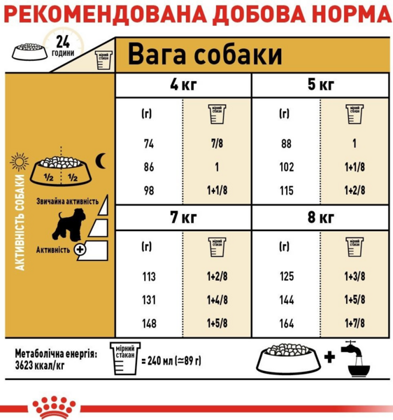 Дотримуватися рекомендованого дозування (див. таблицю на упаковці). Стежте за тим, аби у вашого собаки завжди була свіжа вода.