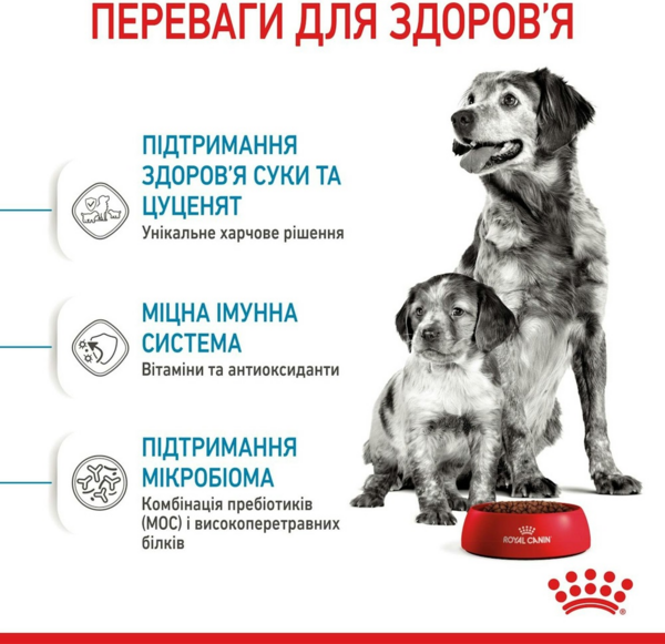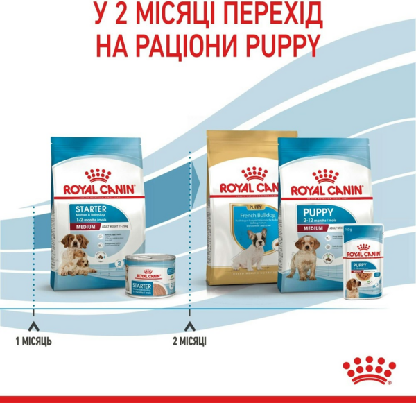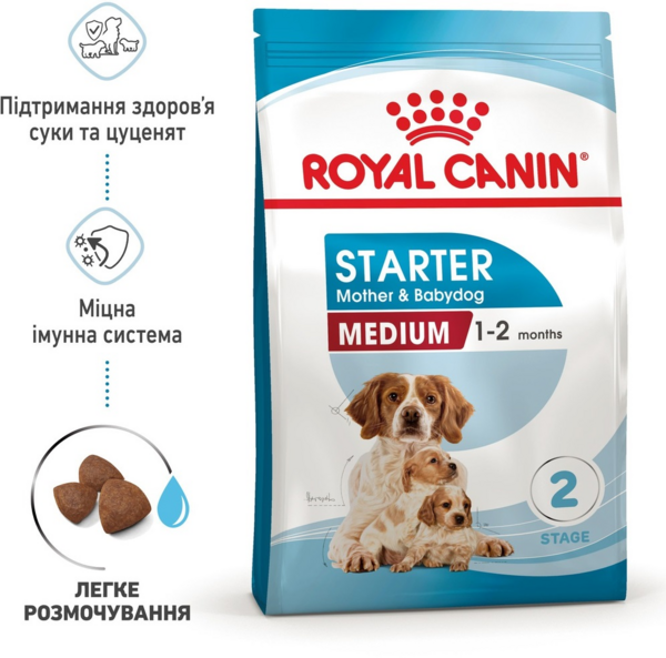 - Сухий корм для собак Royal Canin Medium Starter Mother & BabyDog середніх порід у період вагітності та цуценят до 2 міся