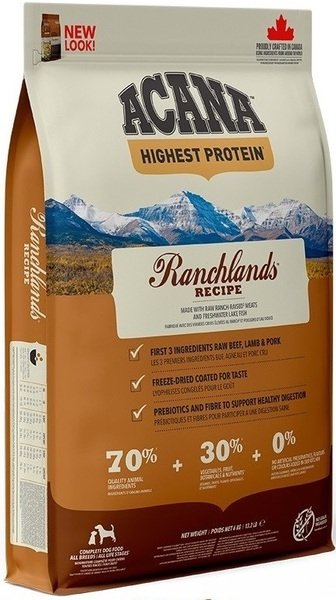 - Сухий корм для собак усіх порід Acana Ranchlands зі смаком яловичини, ягняти, свинини, бізона, судака 11.4 кг