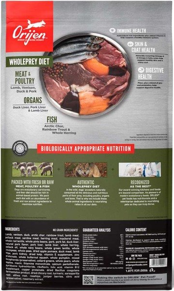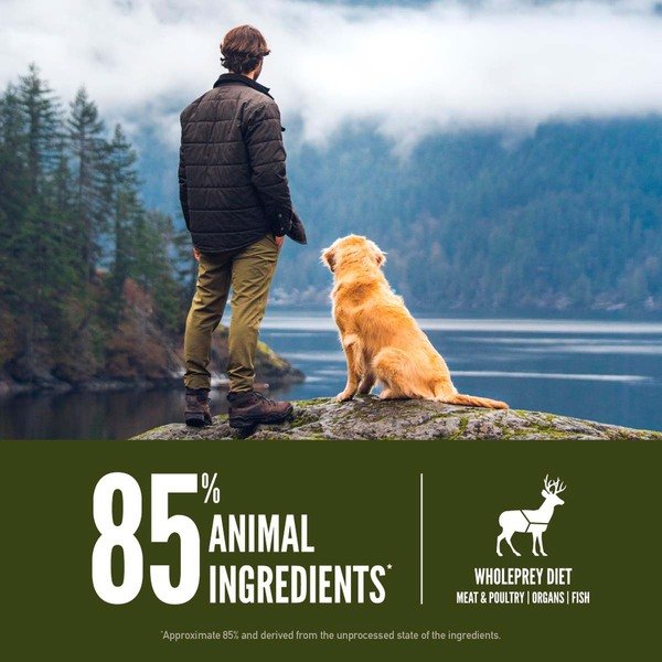 - Наш автентичний раціон WholePrey містить найсоковитіші частини здобичі, такі як м'ясо та риба, органи та кістки, щоб імітувати те, що споживали предки вашого собаки в дикій природі.