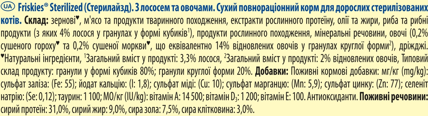 - Сухий корм для стерилізованих котів Purina Friskies з лососем і овочами 10 кг