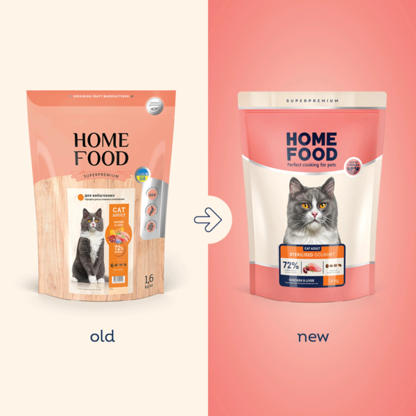 - Сухий корм для вибагливих стерилізованих дорослих котів HOME FOOD Gourmet Курица и печень 1,6кг