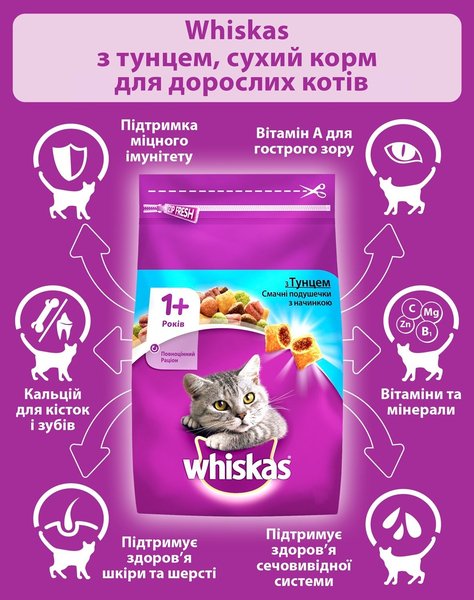 Сухий корм для дорослих котів Whiskas з тунцем 14кг