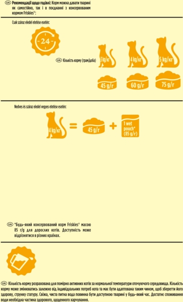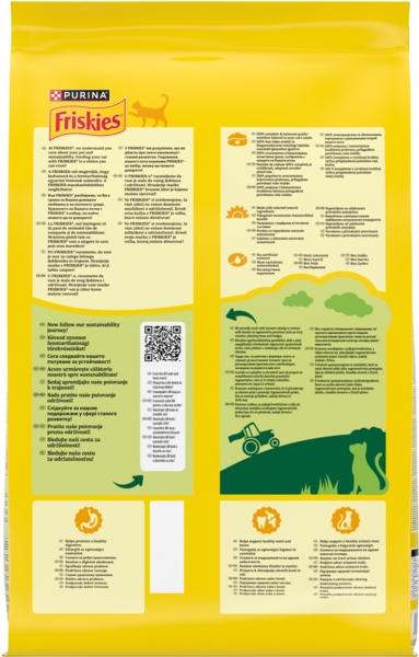 Повнораціонне харчування для вашого улюбленця на кожен день. Цей корм забезпечує вашого котика необхідними речовинами та чудовим смаком, який він так полюбляє, щоб допомагати йому залишатися здоровим та щасливим. Friskies - це корм для котів, створений спеціалістами з харчування тварин Purina.