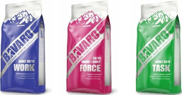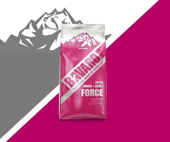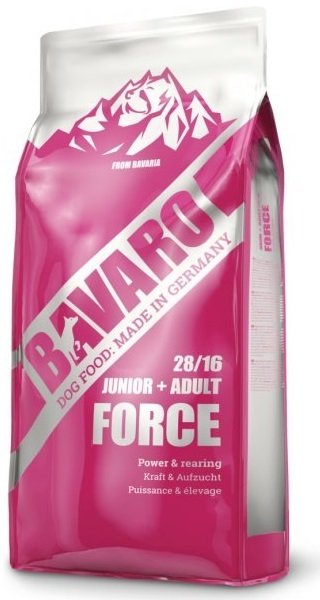 Корм Bavaro спеціально розроблений для робітничих собак. Тому він ідеально підходить для мисливських, рятувальних, охоронних та спортивних собак. Корм не містить сою та цукор, генетично змінену сировину, консерванти, а також штучні ароматизатори та барвники. Bavaro Force 28/16 – рекомендується для собак із підвищеною потребою в енергії при сильних фізичних навантаженнях. Завдяки особливому співвідношенню протеїну і жиру, цей корм може використовуватися для вирощування молодих собак з 2-го місяця життя.