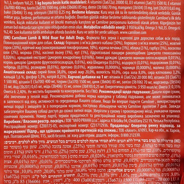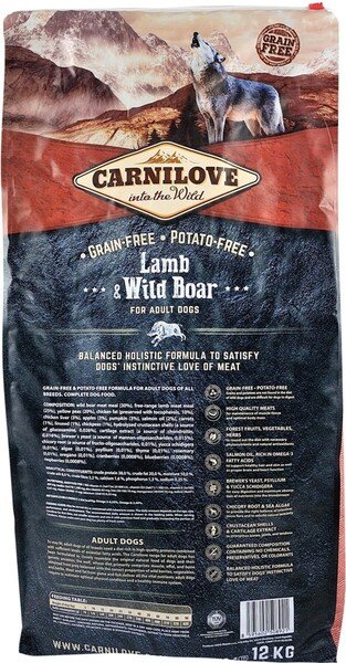 - Carnilove Lamb & Wild Boar для дорослих розроблено з урахуванням спеціальних потреб дорослих собак, аби забезпечити надходження поживних речовин, необхідних для підтримання оптимальної фізичної форми та здоров'я імунітету.