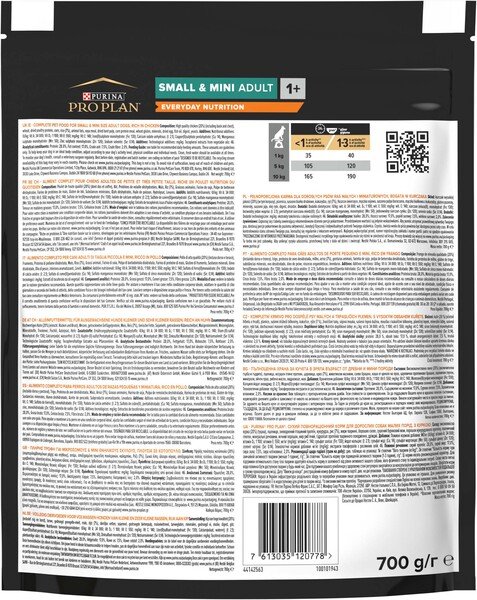 - Сухий корм для дорослих собак дрібних порід Purina Pro Plan Small&Mini Adult з куркою 700 г