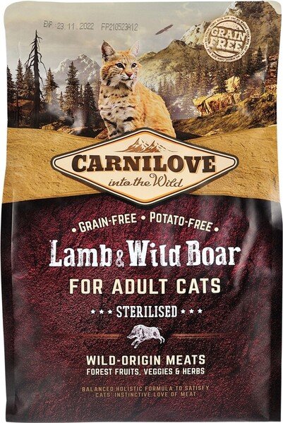 - Сухий корм для дорослих стерилізованих кішок Carnilove Lamb & Wild Boar Sterilised 2 кг