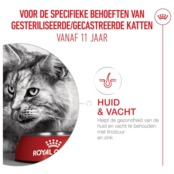 Royal Canin FHN Ageing Sterilised 11+ спеціально розроблений для задоволення унікальних потреб вашої літньої, стерилізованої або кастрованої кішки. Цей корм допомагає підтримувати життєво важливі функції, такі як функція нирок, яка вимагає особливої уваги в міру старіння вашої кішки. Корм збагачений комплексом Healthy Ageing Complex і містить збалансовану формулу з низьким вмістом фосфору для підтримки нирок. М'які гранули легко жувати навіть кішкам з чутливими зубами і стимулюють апетит.