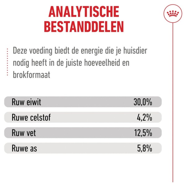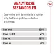 | Склад | Гідролізований хрящ (джерело хондроїтину 0,001%), Пшениця, кукурудза, пшеничний глютен, дегідратовані білки птиці, кукурудзяне борошно, гідролізовані тваринні білки, рослинні волокна, тваринні жири, соєва олія, буряковий жом, кукурудзяний глютен, мінерали, дріжджові продукти, альгrium. (джерело EPA+DHA), сушена томатна пульпа (джерело лікопіну), лушпиння та насіння псилліуму, фруктоолігосахариди, дріжджі (джерело манноолігосахаридів), глюкозамін, отриманий в результаті ферментації, рибний жир, борошно з тагетесу |