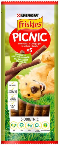 Дякувати улюбленцю потрібно за кожну правильну дію не тільки словом, але і смаколиком! При цьому важливо, щоб частування під час дресирування приносило не лише задоволення, а й користь. Експерти Purina, розробляючи корми та ласощі для домашніх улюбленців, створили Friskies Picnic (Пікнік) з яловичиною — смачні палички з підвищеним вмістом білка, які не лише стануть чудовим заохоченням та частуванням, але й будуть корисні для вашого улюбленця. Проявіть свою любов та вдячність до улюбленця за допомогою смачного та корисного додаткового сухого корму для собак Friskies Picnic.