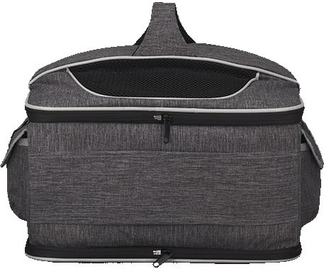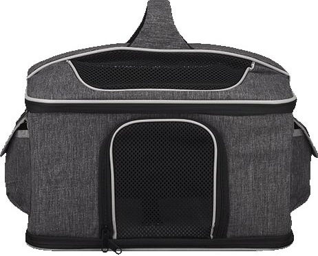Сумка-переноска для тих, хто подорожує разом із вихованцем або часто відвідує ветеринара. Завдяки верхньому отвору вихованця зручно діставати, а сітка на передній частині дозволяє спостерігати за навколишнім оточенням. Модель підійде власникам кішок, собак дрібних порід, кролів та інших невеликих тварин. Сучасний сірий колір надає виробу акуратного і стриманого вигляду.