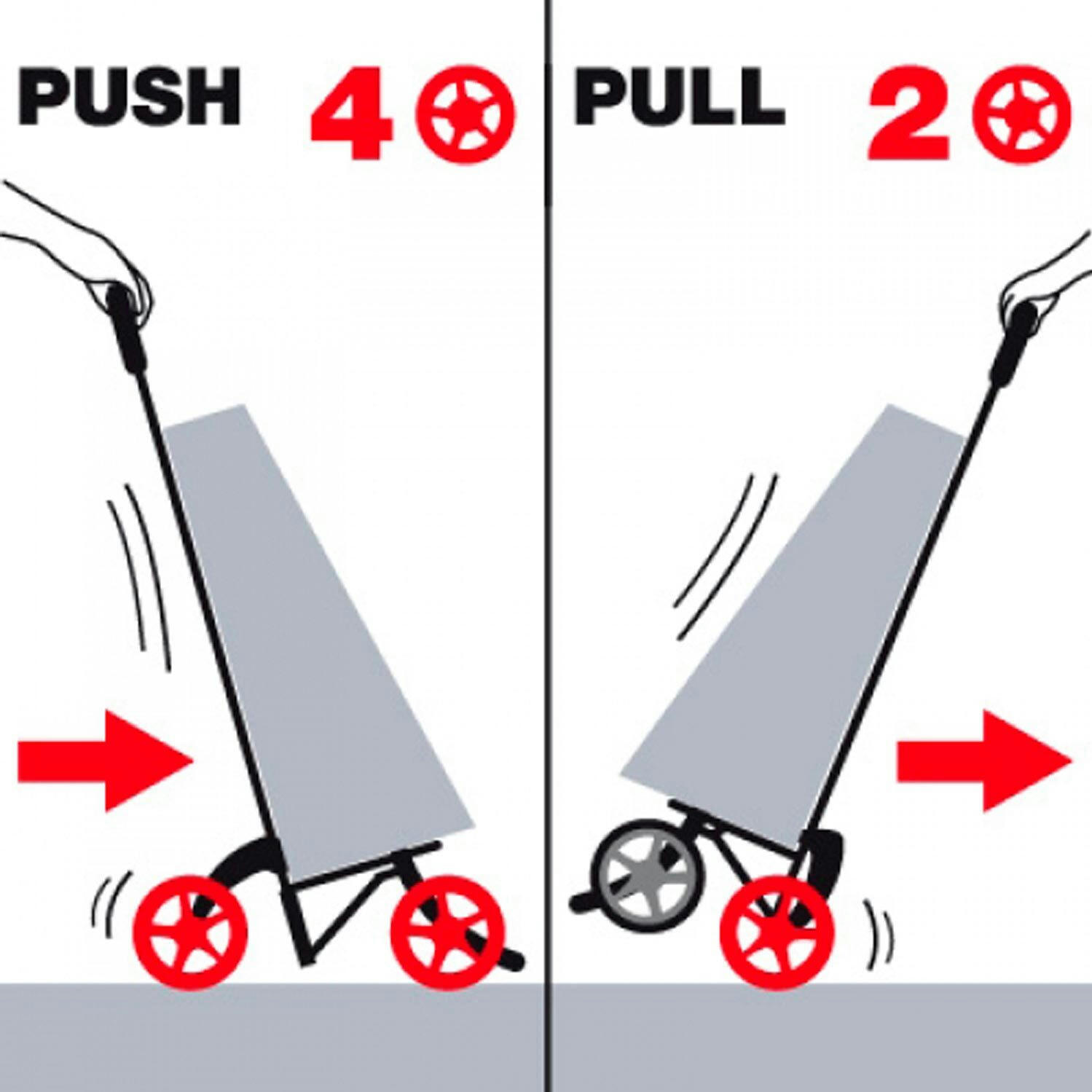 Сумка-візок Gimi Twin оснащена чотириколісним шасі, яке дозволяє однаково зручно котити її як перед собою, так і за собою, завдяки тому, що передні колеса можуть бути опущені або підняті за потреби. Twin запобігає перекиданню й водночас забезпечує легке маневрування. Сумка оснащена блискавкою, що дозволяє повністю відкрити передню частину, спрощуючи завантаження та вивантаження продуктів. Ви також можете від’єднати сумку від каркаса за допомогою зручної системи Easy-Click. Дві додаткові кишені надають більше місця для зберігання — як усередині, так і зовні. Універсальне кріплення до візка супермаркету дозволяє звільнити руки для комфортного шопінгу. Поліуретанова ударостійка ручка має П-подібну форму з м’яким покриттям Soft Touch.