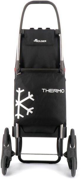 Сумка-візок Rolser I-Max Termo Zen 6L Negro (IMX355-1023) - надійний помічник при поході за продуктами до супермаркету чи на ринок. Особливістю даної моделі є наявність термокишені на чотири літри для заморожених продуктів або охолоджених напоїв. Алюмінієва конструкція візка дозволяє транспортувати вантаж максимальною вагою до 40 кг. Рама 2LRSG має систему для повного складання, а також оснащена адаптером для з’єднання з візком супермаркету. Розкладна основа виконана з алюмінію, а опора - з міцного термостійкого пластику. Шість литих ультралегких коліс сприяють підйому будь-якими сходами. Під час руху рівною поверхнею участь беруть чотири колеса, при цьому вага рівномірно розподіляється по шасі та не навантажує спину. Внутрішня частина рукоятки має пластикове покриття для комфортного транспортування сумки-візка в холодну пору року. Міцний поліестеровий матеріал сумки захистить вміст від дощу та снігу. Знімна сумка має зручну широку горловину, яка стягується шнуром з фіксатором. Верх сумки накритий захисним клапаном. На дні сумки передбачене вставне дно з пластику.