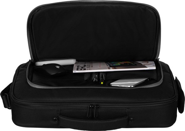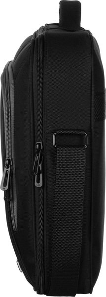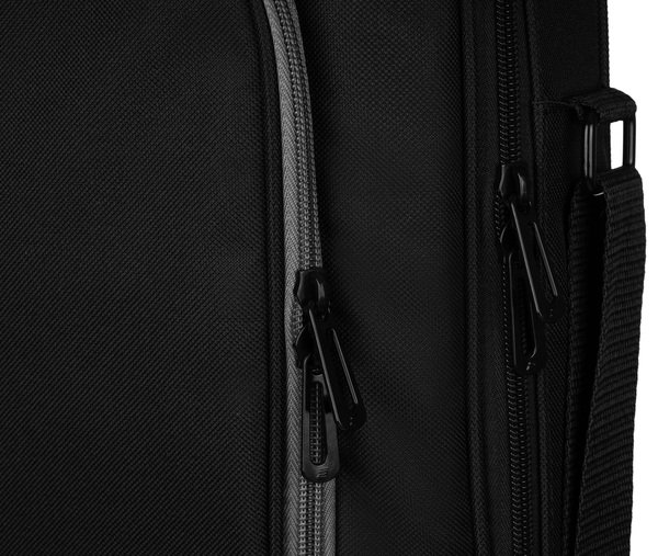 Зовнішній вигляд сумки досить суворий, водночас елегантно скомпонований і міцний. Виготовлена з вологозахисного текстильного матеріалу. Головне відділення для ноутбука зі щільною м'якою підкладкою, пінним наповнювачем і надійними фіксувальними ремінцями на липучці. Відсік органайзер на передній частині закривається на блискавку з двома бігунками. У ньому достатньо місця для зберігання смартфона, авторучок, ключів і візитних карток, а також мишки і блока живлення.